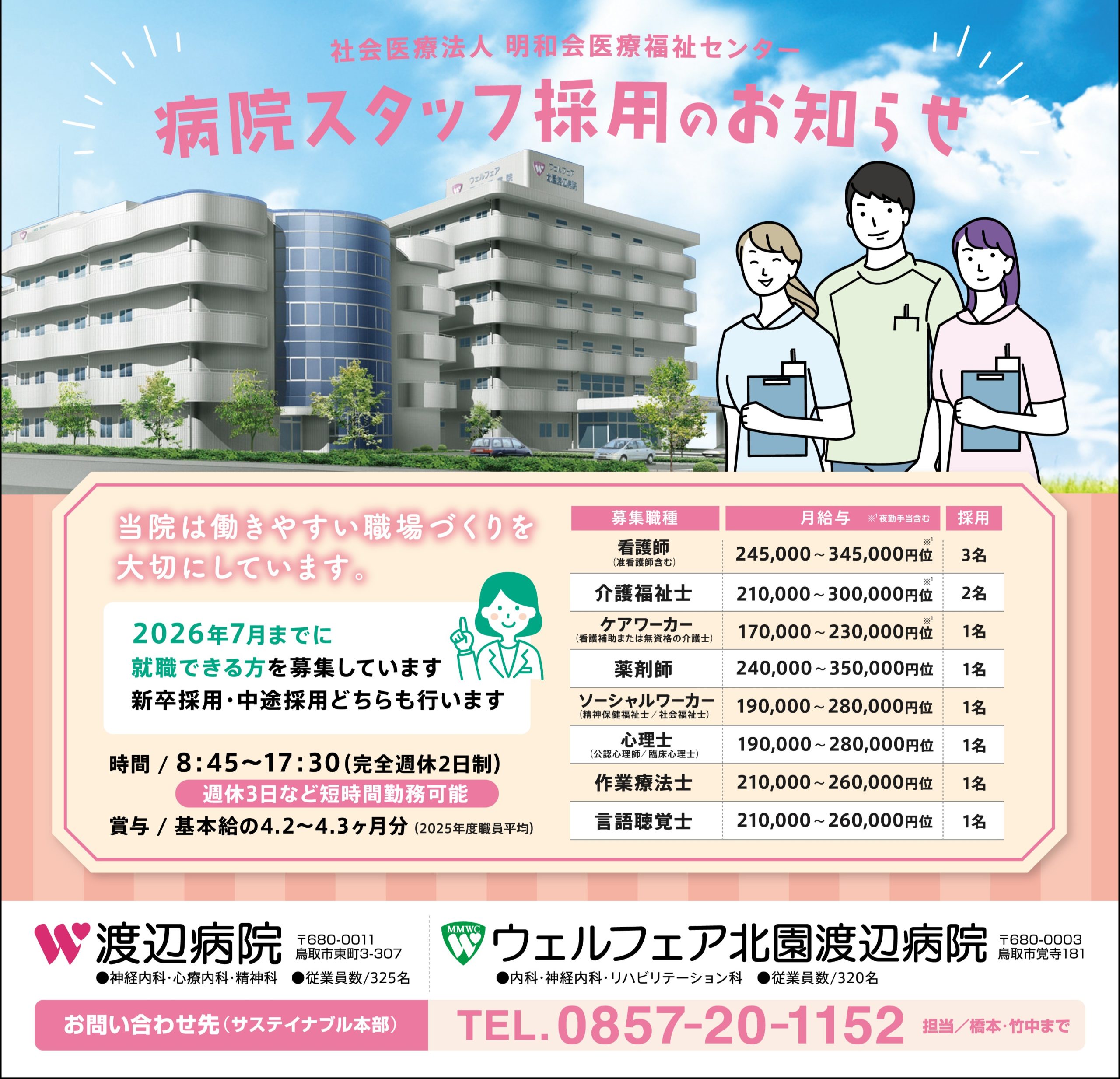 ソーシャルワーカー、心理士、作業療法士、言語聴覚士の採用情報です。